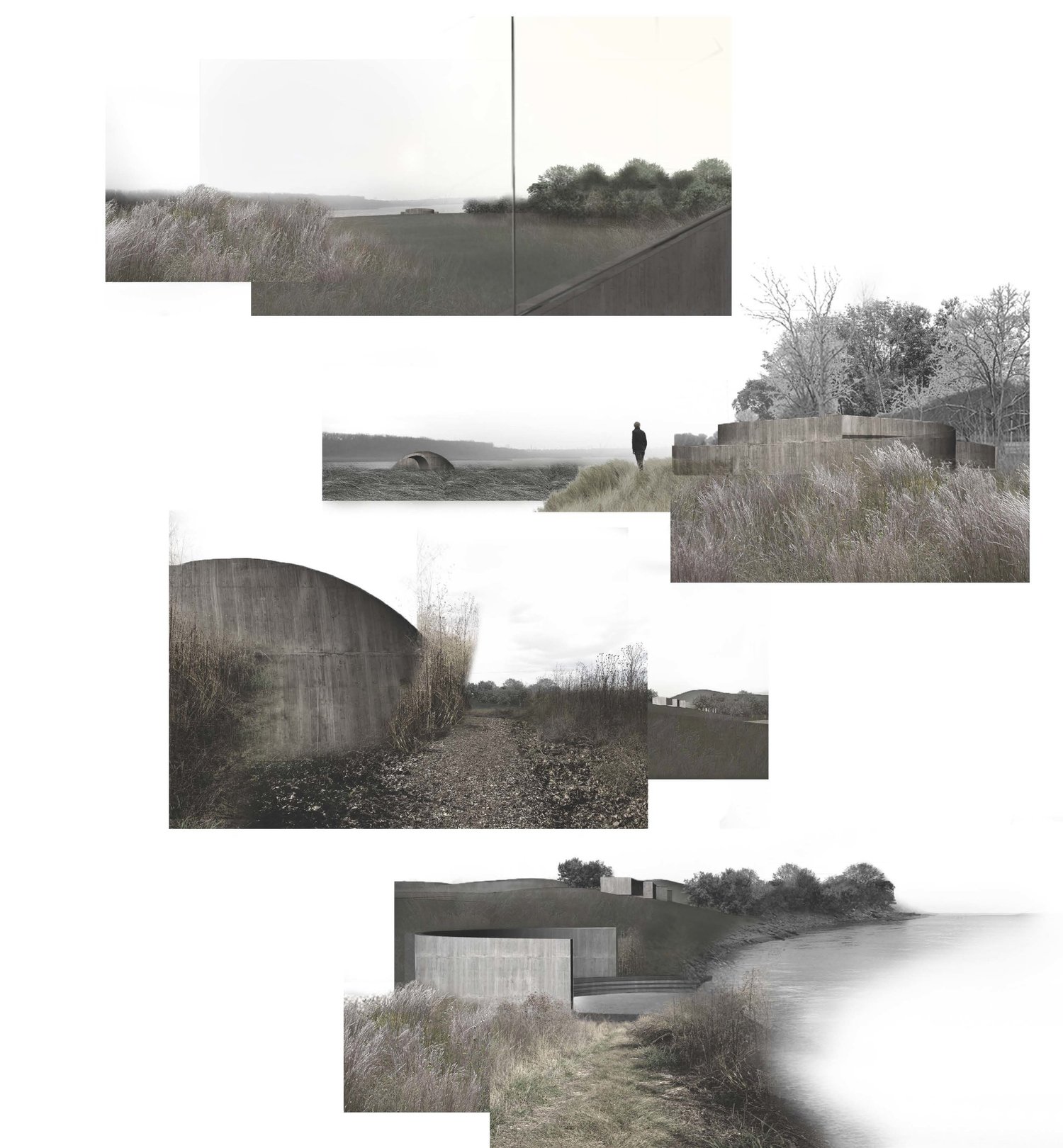 Path from the main building, through the site, and past the monuments to time: cosmic time, no-time, seasonal time